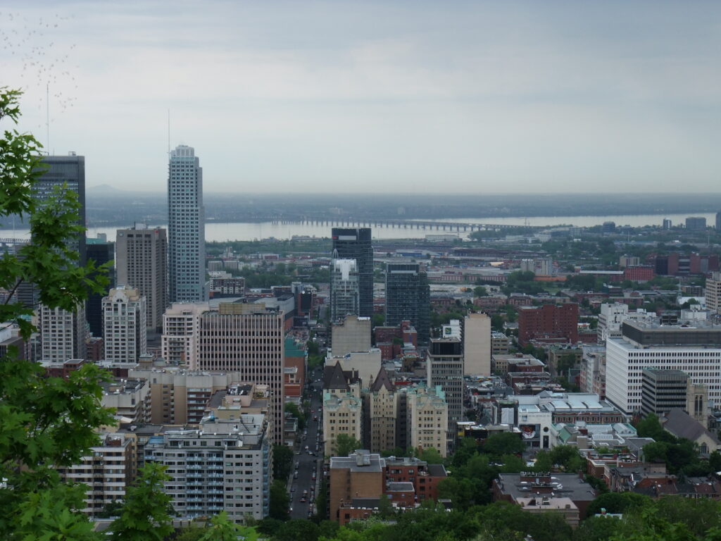 Monika and I took the bikes from the Bixi (which has stations all over town where you can rent and return the bikes) again and cycled up the Mount Royal: you’ve got a very good view all over downtown but the weather was cloudy (but warm): then we cycled down the hill again – unfortunately on the wrong side, so we gave the bikes back and went back into town by bus