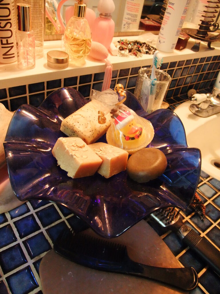 Besides feeding the animals and planting in the garden we are producing soaps, body butters and lip balms here. Which is just fantastic and I still love the smell when I enter the dairy parlour (which should be called the soap kitchen by now 😉 ).