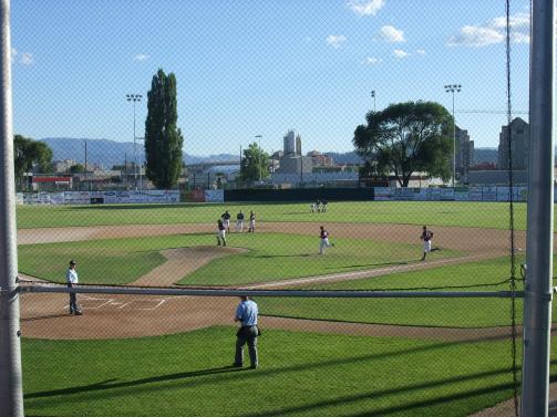 Since renting the bike for 24 hours only cost $10 more than if I had returned it in the evening, I spontaneously decided to attend a baseball game of the top-class Kelowna Falcons.