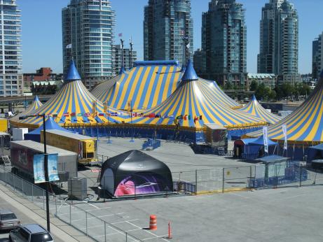 Then I set off for some sightseeing (gosh, I was still motivated then…). First down to BC Stadium, where the awesome BC Lions play, but which is currently being renovated (so no watching football for me 🙁 ), then past the casino, and towards Science World, but before that, the unmistakable tents of Cirque du Soleil crossed my path once again.