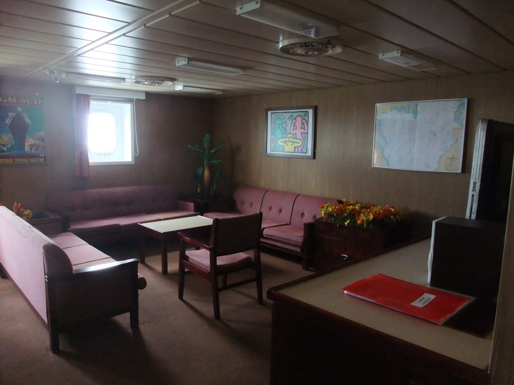 First insight: the captain and the officers meet around 12 noon in the bar and have drinks… Note to myself: don’t take gin – the whole thing lasts about 15-20 minutes and all sorts of things are discussed (if I understood correctly), so it’s a kind of informal department meeting. For example, the engine is apparently making some strange noises, the blonde girl has become manager of something, and I’ve learned that we’re obviously not leaving until around 9 p.m. tonight – all, assuming I understood correctly.