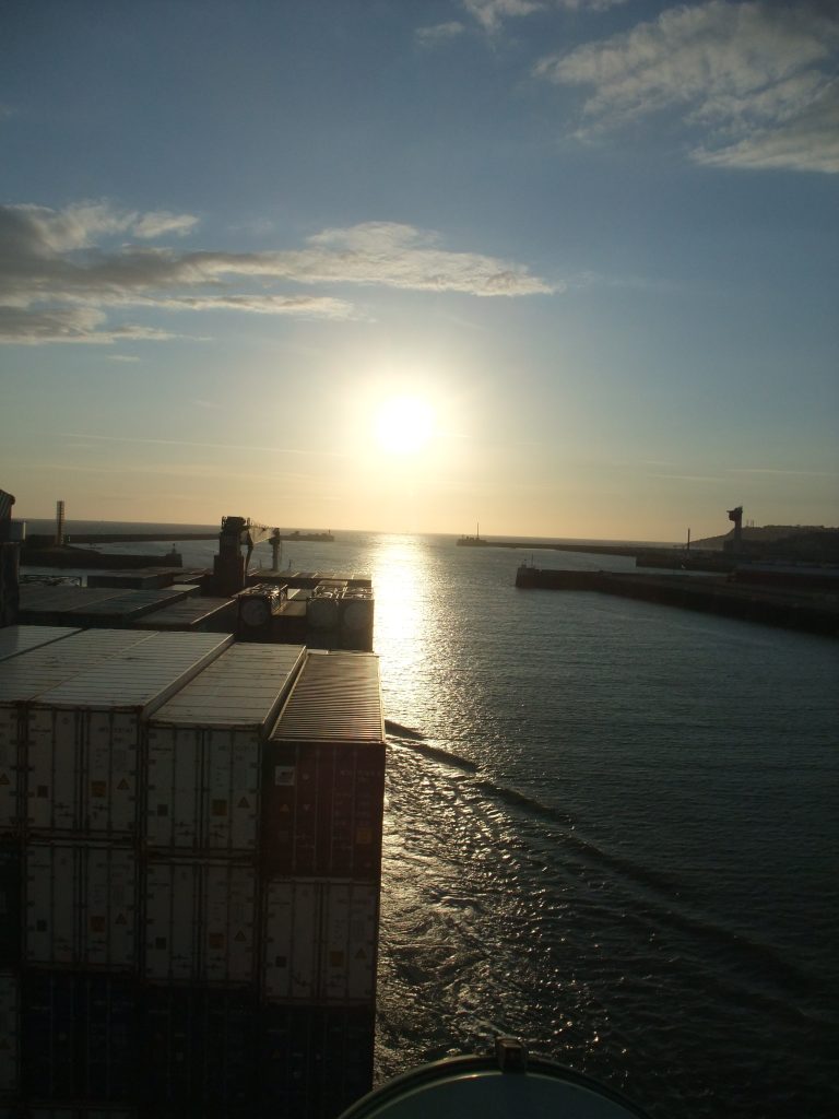 Finally, we’re on our way. The departure was originally planned for 9 p.m., but it was brought forward by an hour and the port agent unfortunately failed to pass on the change to the pilot, so we had to wait forever for him and didn’t set off until around 8:30 p.m.