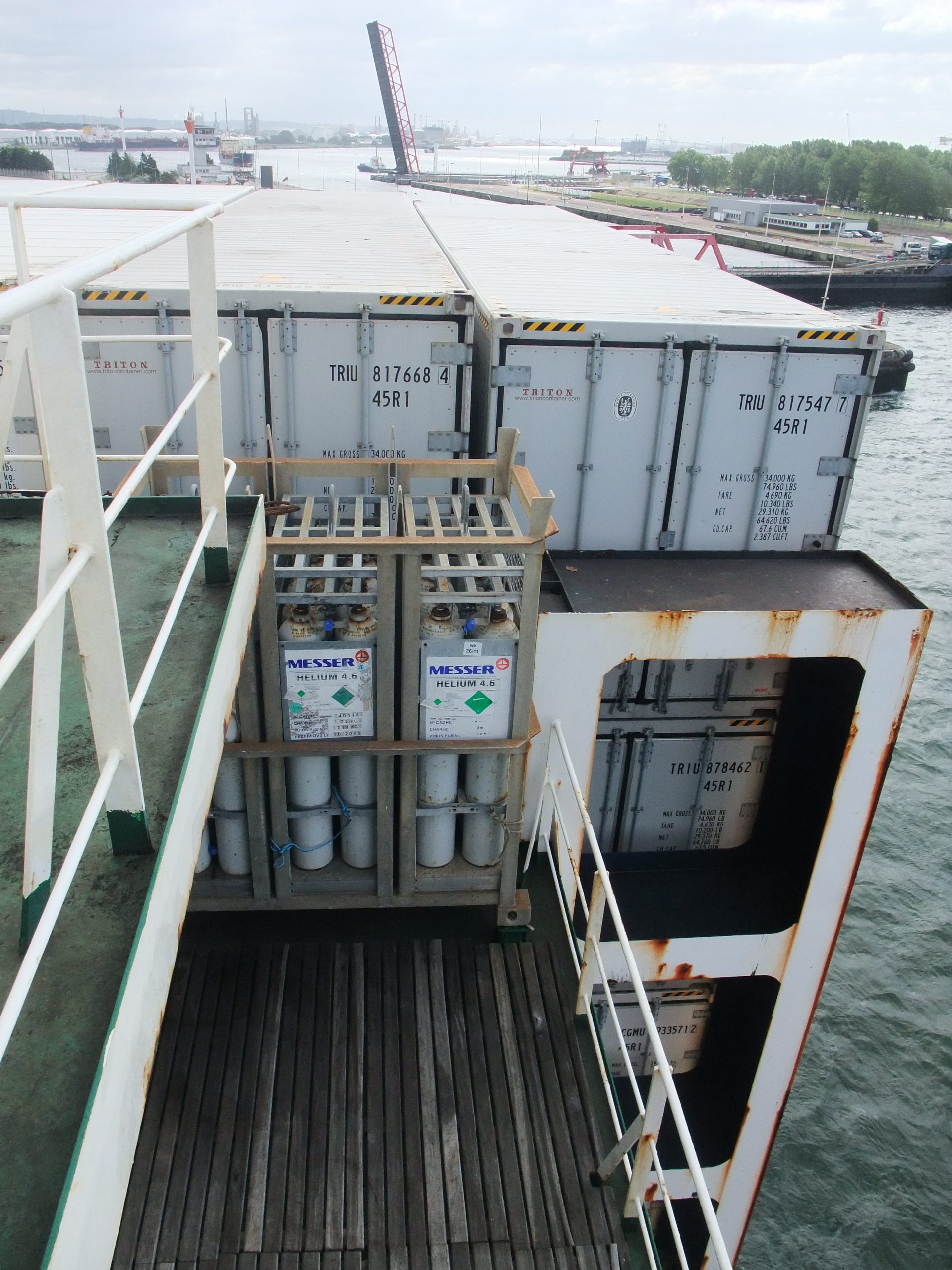 He was also the one who explained to me why we were waiting so long and that we would be leaving Montoir at 6:00 a.m. on Sunday (morning!!!) and recommended that I should get up anyway and watch the unberthing maneuver, because the ship has to make a 180° turn and then somehow has to pass under a bridge…. I probably won’t be able to sleep much beforehand anyway, if they’re working through the night. But we’ll see…