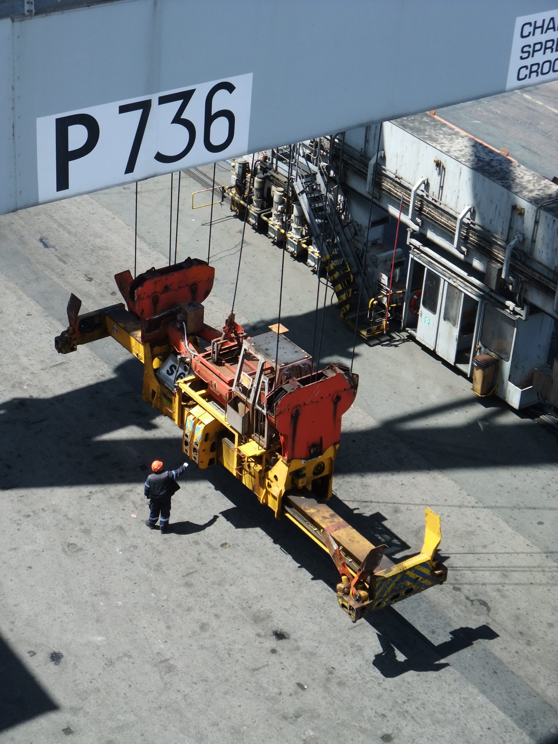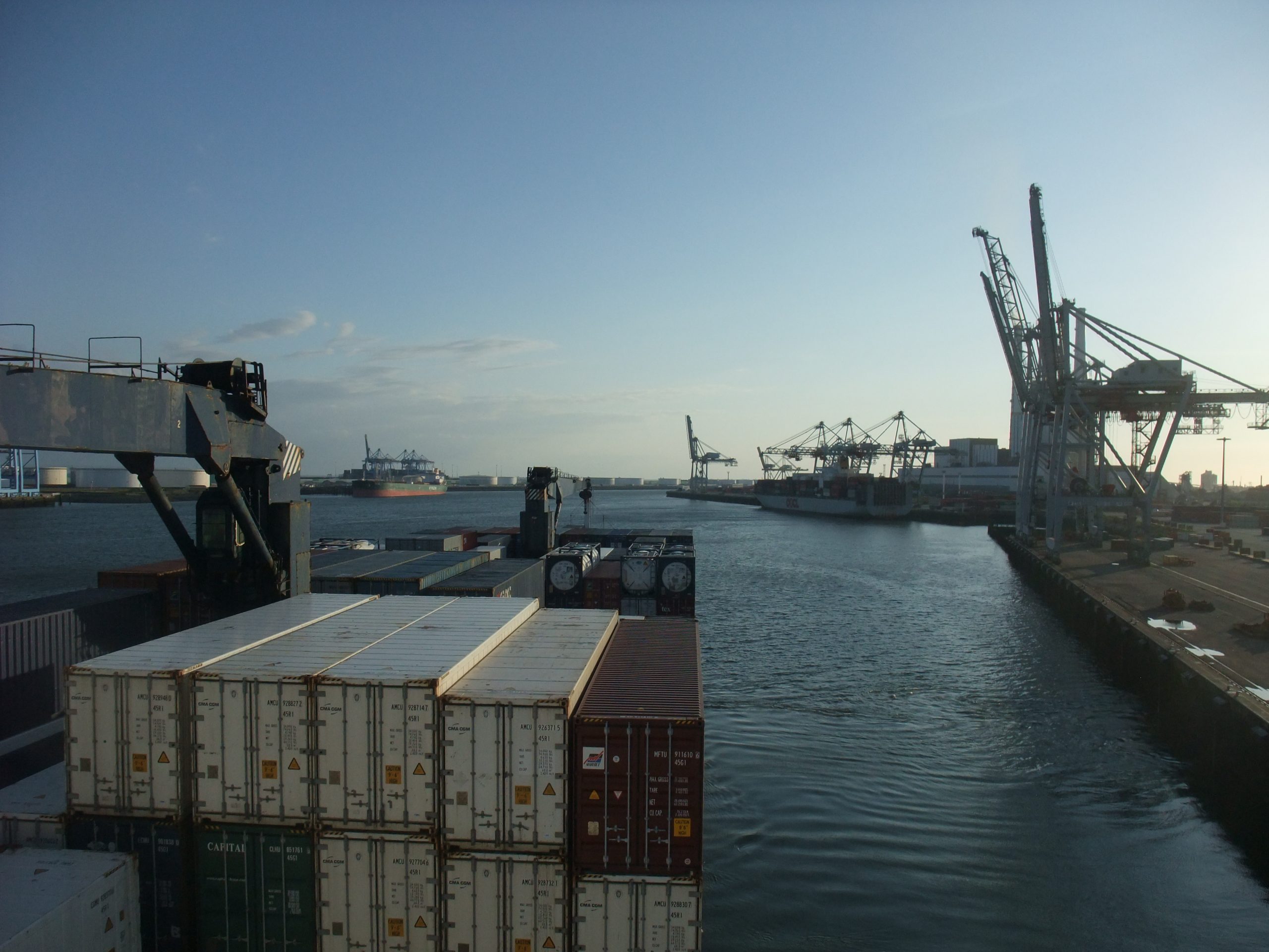 At around 8:30 a.m., we finally set off (way too early for me) for the port. Mr. Hardy from CMA CGM said we should call him before driving into the port area, but Nsenga said it would be fine, and when we tried to call this morning, no one answered. Anyway, we ended up standing in front of the security gate and weren’t allowed in. I have no idea what Nsenga, the security guy, and Mr. Hardy discussed, but the fact was that we would have had to drive back to CMA to get a permit to enter the port area, and it was too late for that (because of Nsenga’s bank appointment). So they ordered a taxi to take me to the ship (about 500 m), then Nsenga sped off and I stood around in the cold wind at the security entrance… until a taxi picked me up about 20 minutes later.