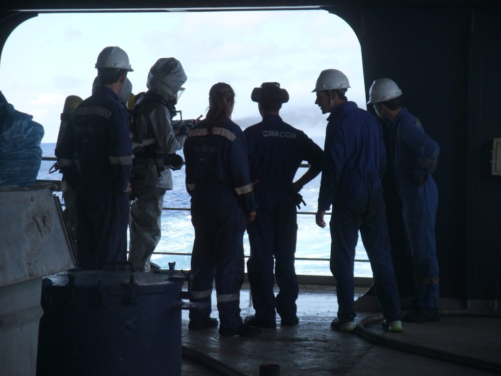 So I went back down to the smoking room and killed the last quarter of an hour before the alarm with a few more darts. Then it finally came and everyone ran down to the A deck (this time I heard the announcement loud and clear), where the firefighting equipment room is located. After that, we went out to the stern of the ship and then there was… NOTHING, no fire, nothing. First, the firefighting experts demonstrated how to use the hose properly, and then the cadets were allowed to have a go, while the rest of the crew was “allowed” to go back.