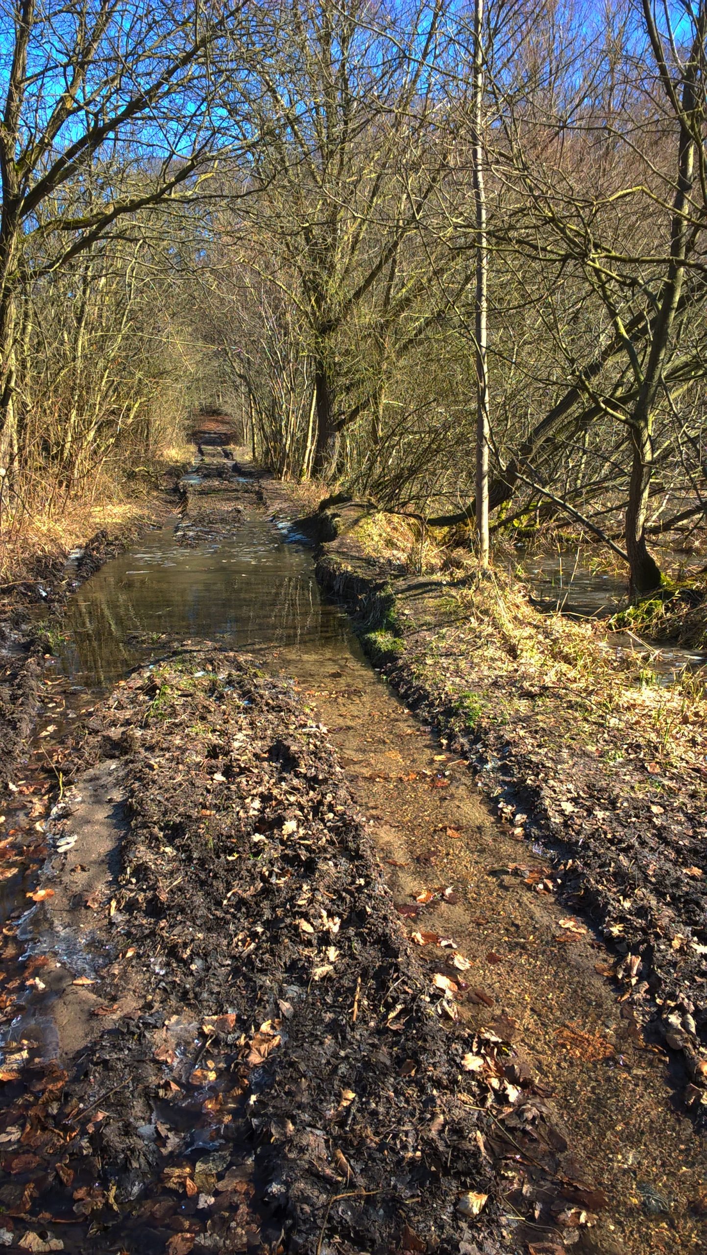 One trail was worse than the last one, frozen mud and deep tractor tracks included, until the whole road was flooded and I didn’t even have a clue if I was on the right track (it certainly didn’t feel like an official road) and how the conditions would be further on.