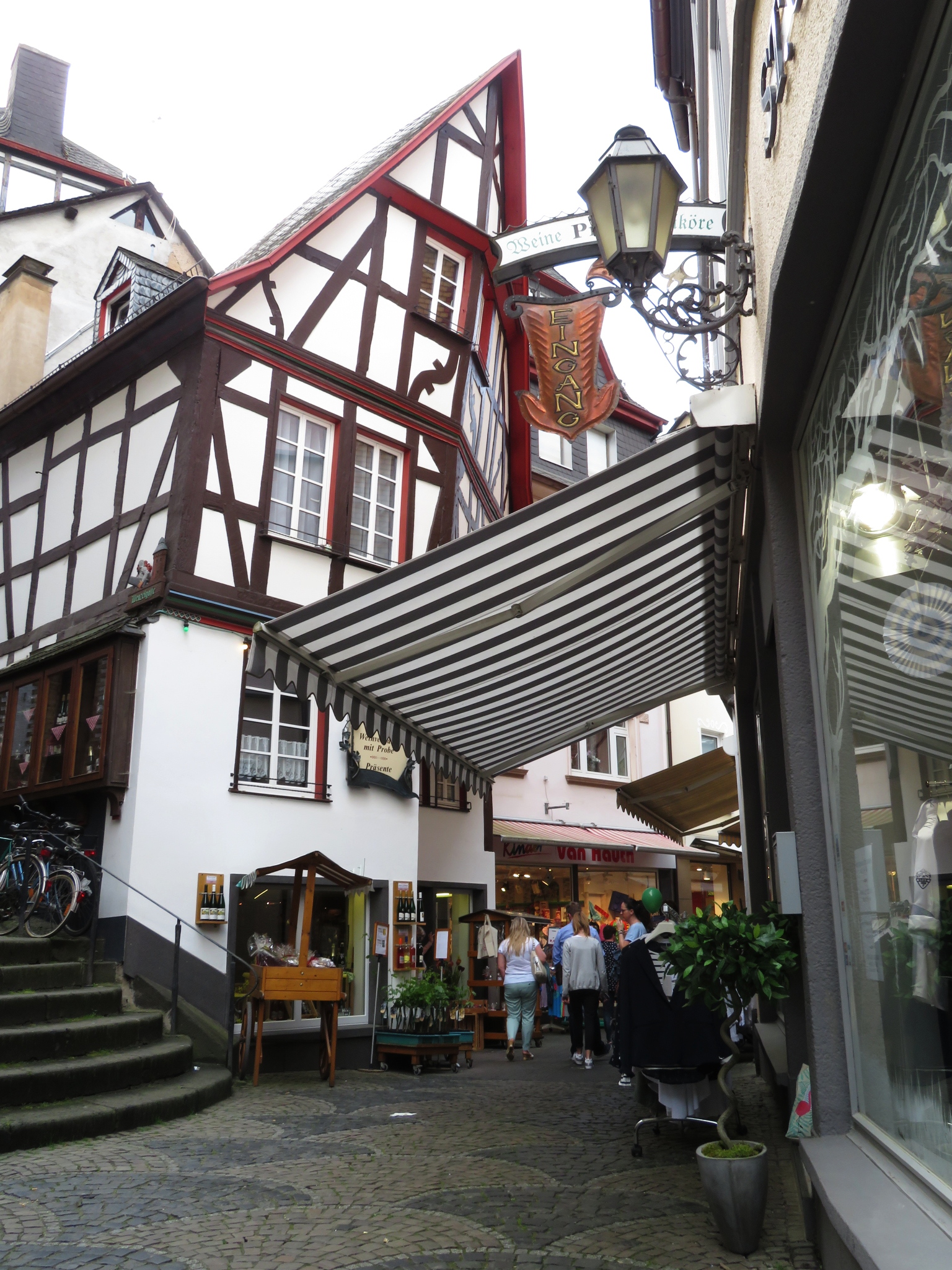 I first went up to the castle „Reichsburg Cochem“ from where one has a beautiful view over Cochem and the Mosel – and went afterwards into town, strolling through the narrow alleys and looking at the nice little shops.