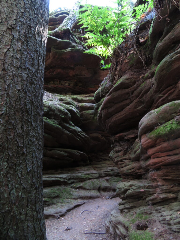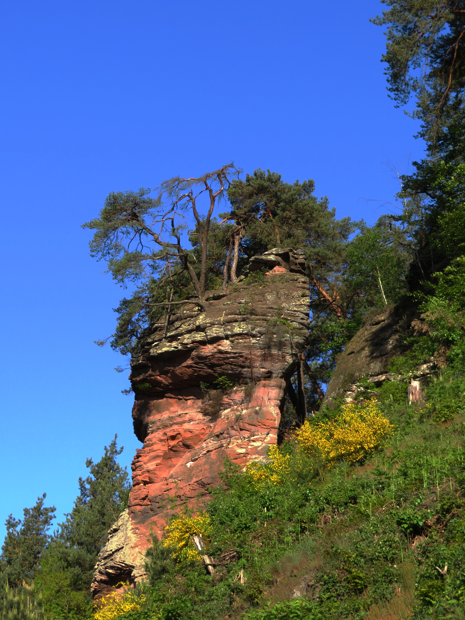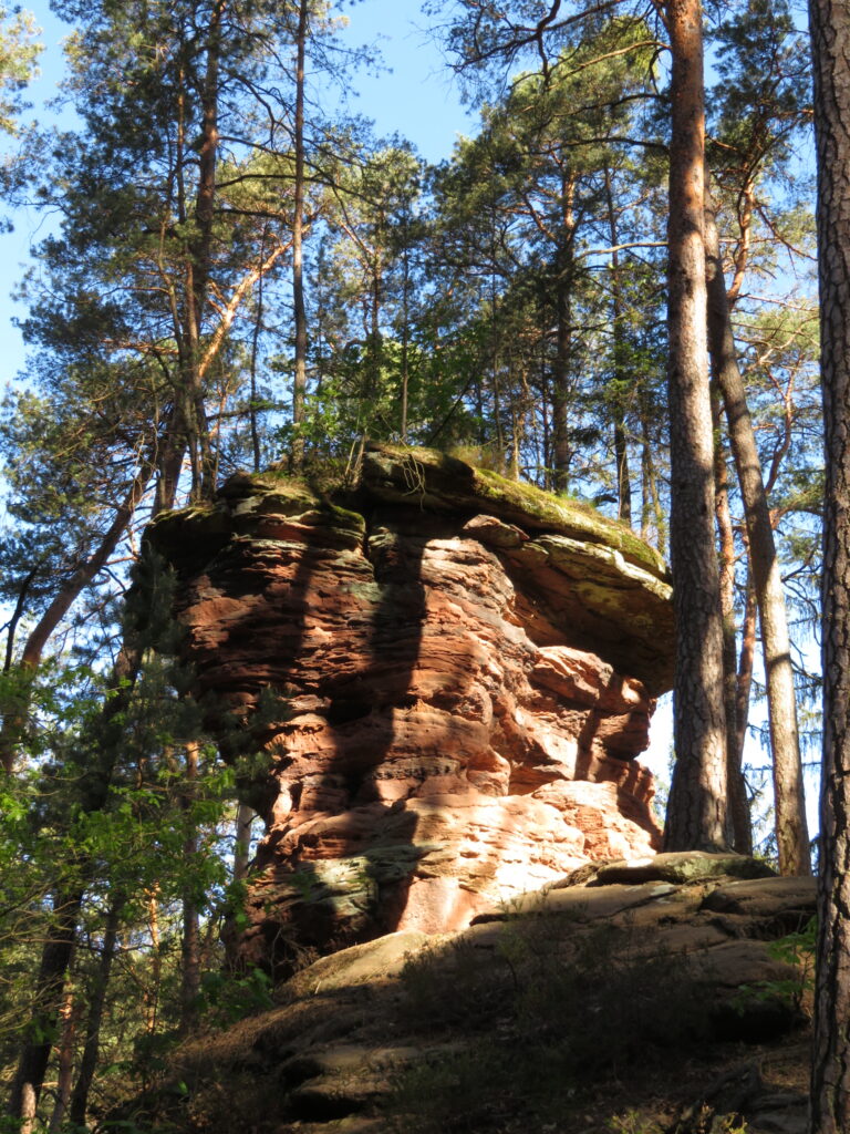 Today I went on the Felsenpfad (=rock trail) around Dahn, actually I did only half of the trail since I needed already three hours for the six kilometers of the first half. The reason? Beauty and curiosity and photo motifs everywhere and walking barefoot for a while and taking it easy and….