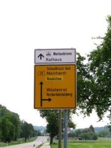 I passed Wuestenrot, Ammertsweiler, Mainhardt and Huetten and found my way to Michelfeld which is really almost already home.