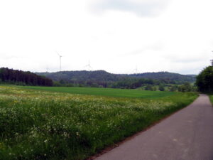 The first climb was already right after leaving the city limits of Heilbronn and was supposedly just a „little“ ascent, in comparison to the long steep climb after Loewenstein but nevertheless I cycled up and up and up….luckily in the forest and it also started to drizzle a little bit for cooling 😉