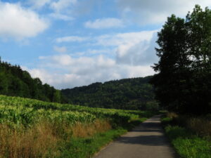 On Wednesday, my whole body was hurting after the steep climb at the end of the previous day. That’s why I decided against cycling the Limes (=Roman border wall) route which includes a lot up and downhills. And opted for the famous Kocher-Jagst cycling route and follow the Jagst river towards the Neckar, the reverse direction from the „original Kocher-Jagst-Route“.