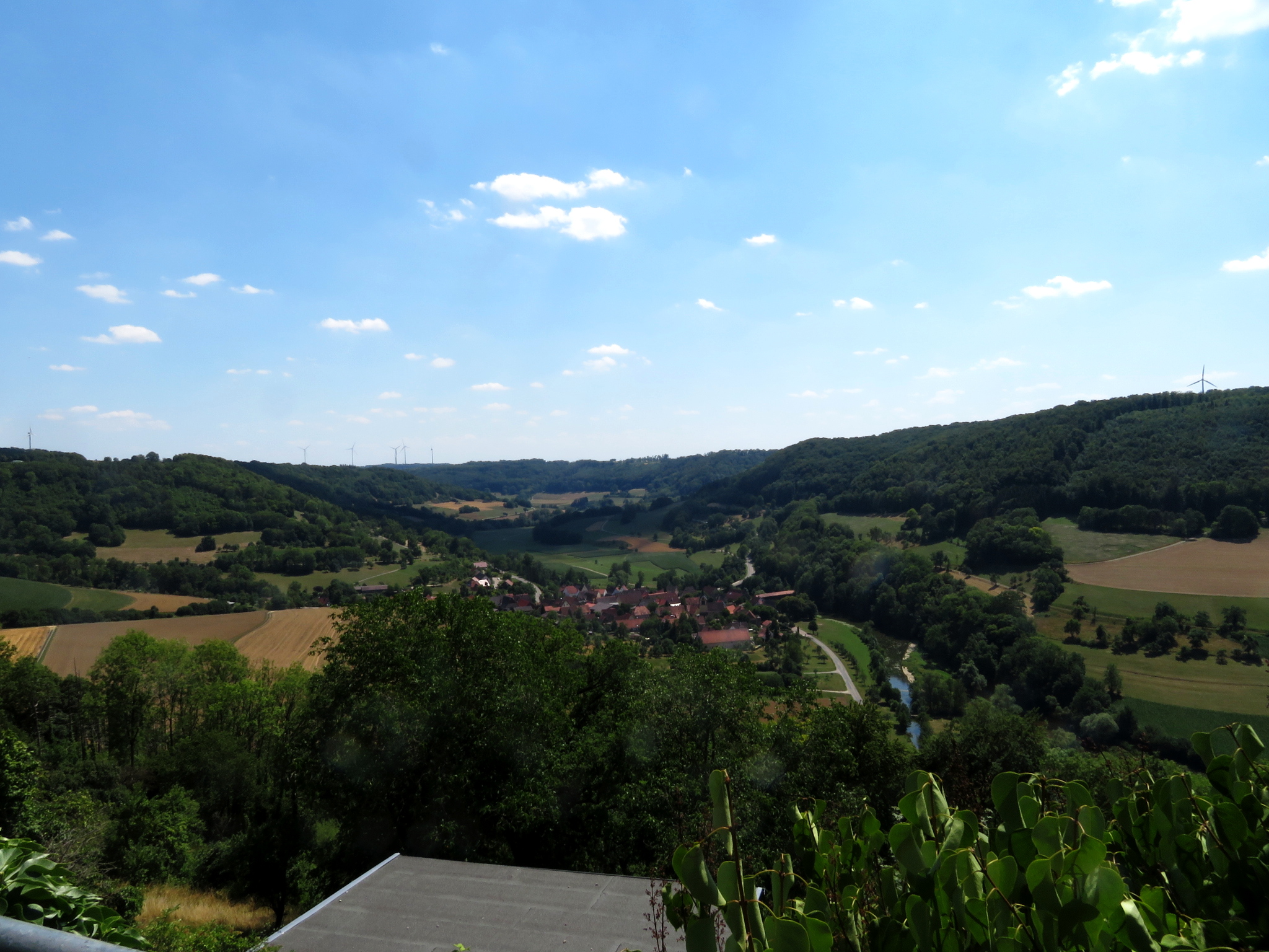 In the plan in my head, I had put Langenburg at the Kocher and planned a relaxed tour back along the Kocher river. But unfortunately, local geography was not my strongest subject at school. Otherwise, I would have known that Langenburg is, in fact, situated above the Jagst and that I had to pass through the valley and cycle the whole way up again on the other side. And that was happening right after lunch and in full summer heat….absolutely awesome 😉 The good thing was that a large part was in the shade – the bad thing was, that despite the steep climb out of the valley, it wasn’t the last climb and also the signposted cycle path didn’t take the shortest route but back roads through the fields in full sunlight and with some additional hills.