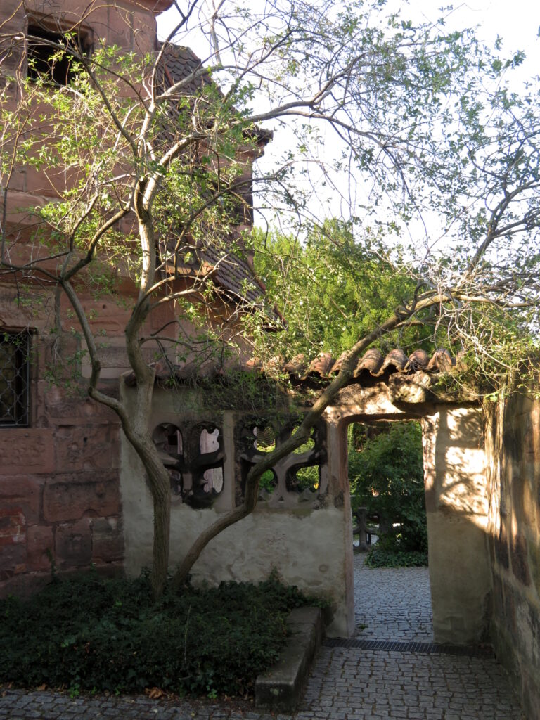 After the great tour (yeah, another one of these castle museum tours…if I had only known that before….), I had a great lunch at the Hexenhaeusel (=the witch’s little house): Nuernberger Rosbratwuerste (= famous sausages from Nuremberg) with coleslaw and delicious potato salad.